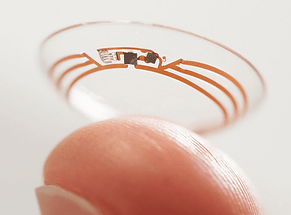 The sensors detect glucose levels in the wearer's tears, taking readings once per second, and the antenna transmits findings to an external device
